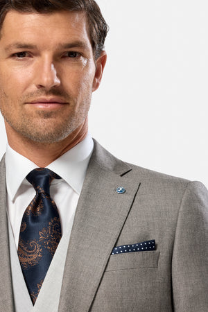 Crafted in a lightweight fabric and tailored in Benetti’s signature Lester Fit, this suit delivers a sharp, structured silhouette with all-day comfort. Whether worn as a clean two-piece or elevated into a polished three-piece, the Marco Stone adapts seamlessly to any occasion. As part of our cohesive mix-and-match collection, it offers endless styling options, making it the perfect choice for grooms and groomsmen to coordinate with confidence and distinction.